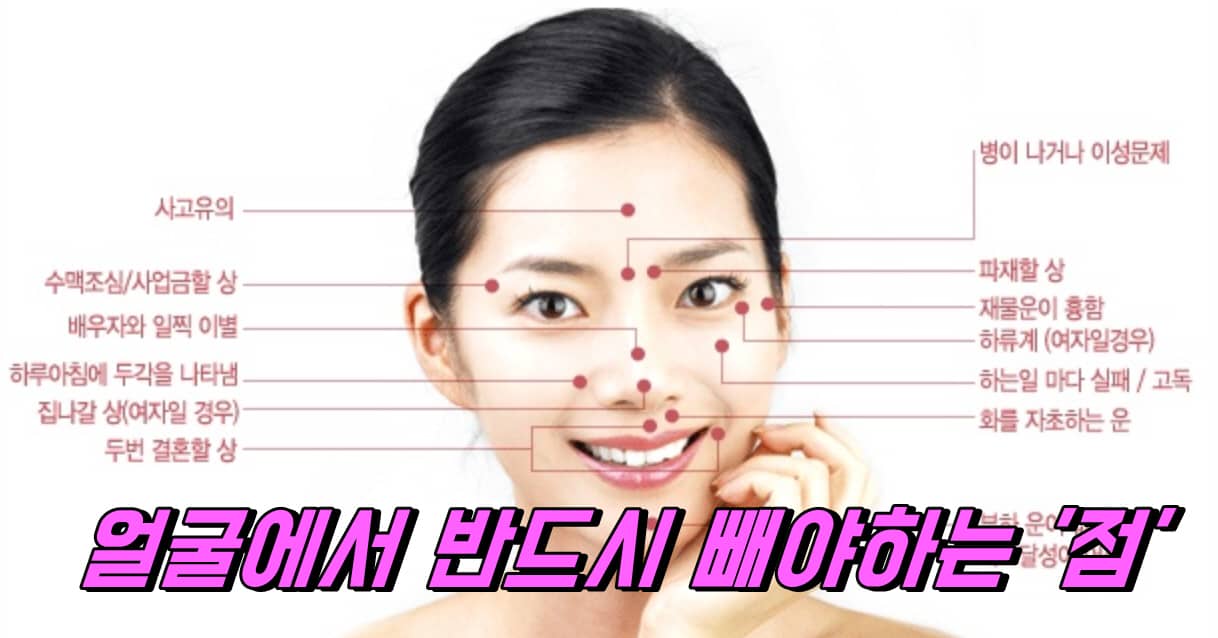 대부분의 얼굴에 있는 점은 안 좋음을 뜻한다고 하니, 가급적 지우는 것이 좋다.