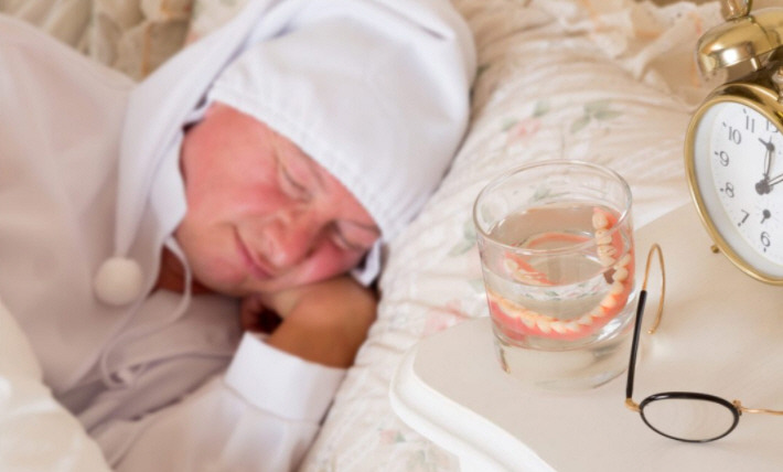 틀니를 하는 사람들 중 어떤 사람은 틀니를 낀채로 잠자는 습관이 있다.